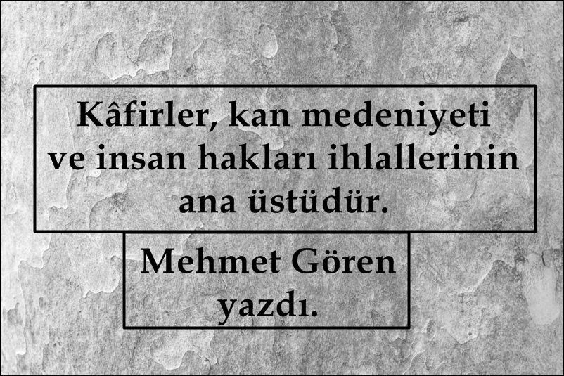 “Kâfirler kan medeniyeti ve insan hakları ihlallerinin ana üstüdür.” Mehmet Gören.