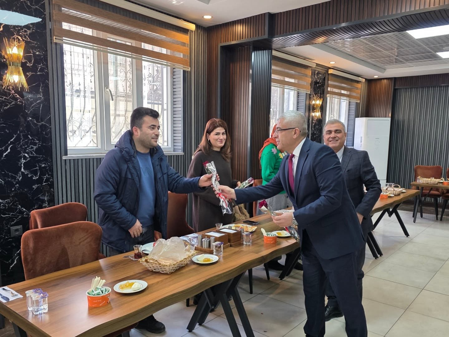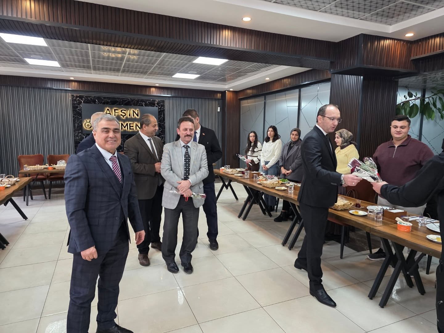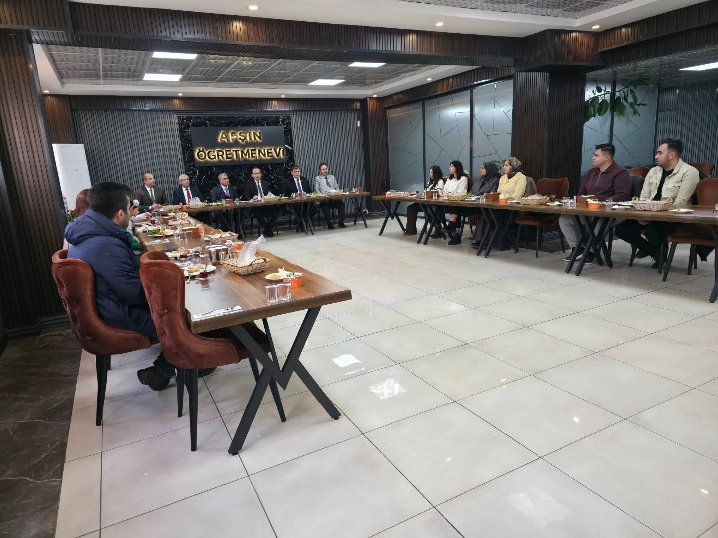 Kaymakam Muammer Sarıdoğan ve İlçe Milli Eğitim Müdürü Bünyamin Özdemir, İlçemize yeni atanan öğretmenlerle Afşin Öğretmenevi’nde düzenlenen kahvaltı programında bir araya geldiler.